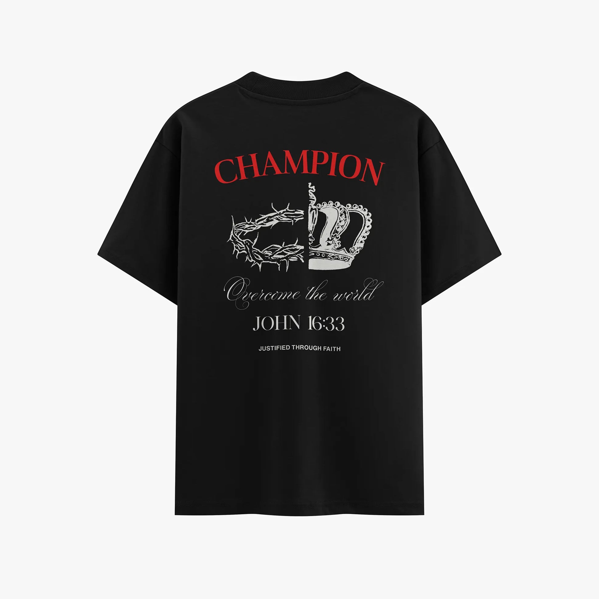 Essa camisa carrega o símbolo da vitória que veio pelo sacrifício: o Rei que se entregou... e ressuscitou como Senhor de tudo.